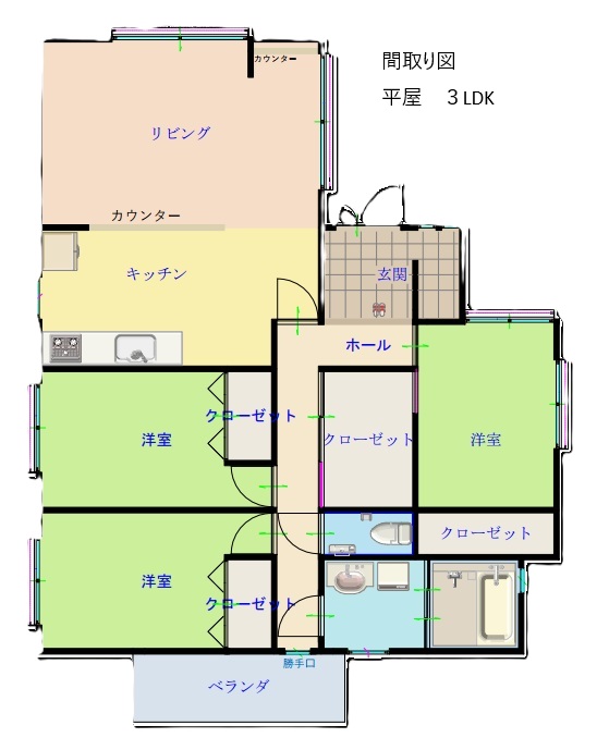 追求した間取りと設備。現代スタイルの3LDK。LDKを広くとることで、家族のコミュニケーションが自然と生まれる空間を創出